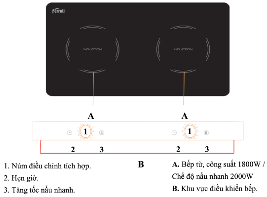 Không những điều khiển cảm ứng mà bếp từ dương Ferroli còn được được trang bị núm vặn giúp việc điều khiển trở nên dễ dàng hơn bao giờ hết. Ngoài ra núm vặn còn được đặt ở mặt bên tạo không gian nấu nhiều hơn.
