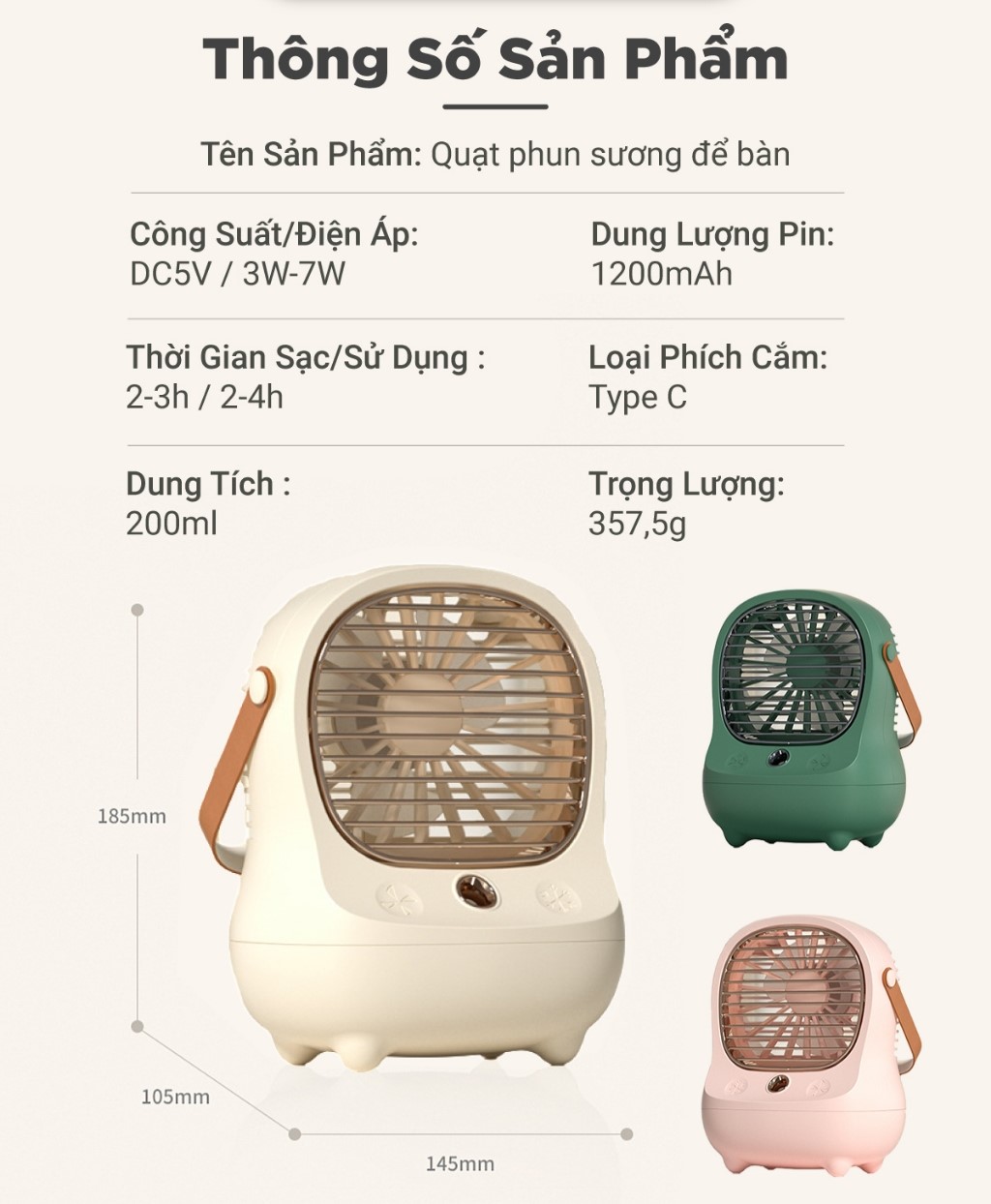 - Tên sản phẩm: Quạt phun sương để bàn