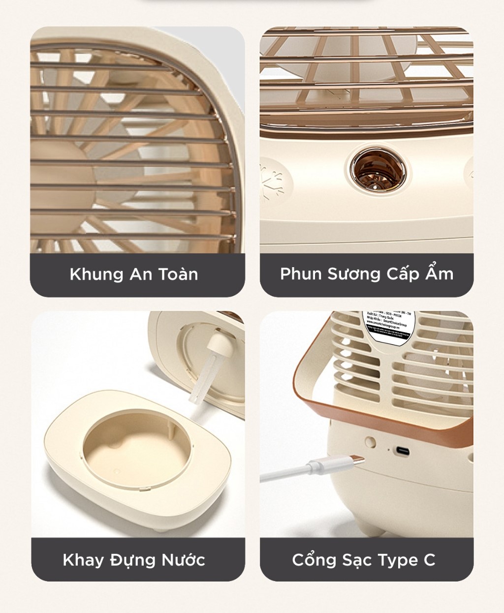 - Thiết kế thẩm mĩ: Quạt phun sương để bàn SmartChoice được thiết kế thẩm mỹ, với nhiều tùy chọn về màu sắc, phù hợp với trang trí nội thất của bạn.