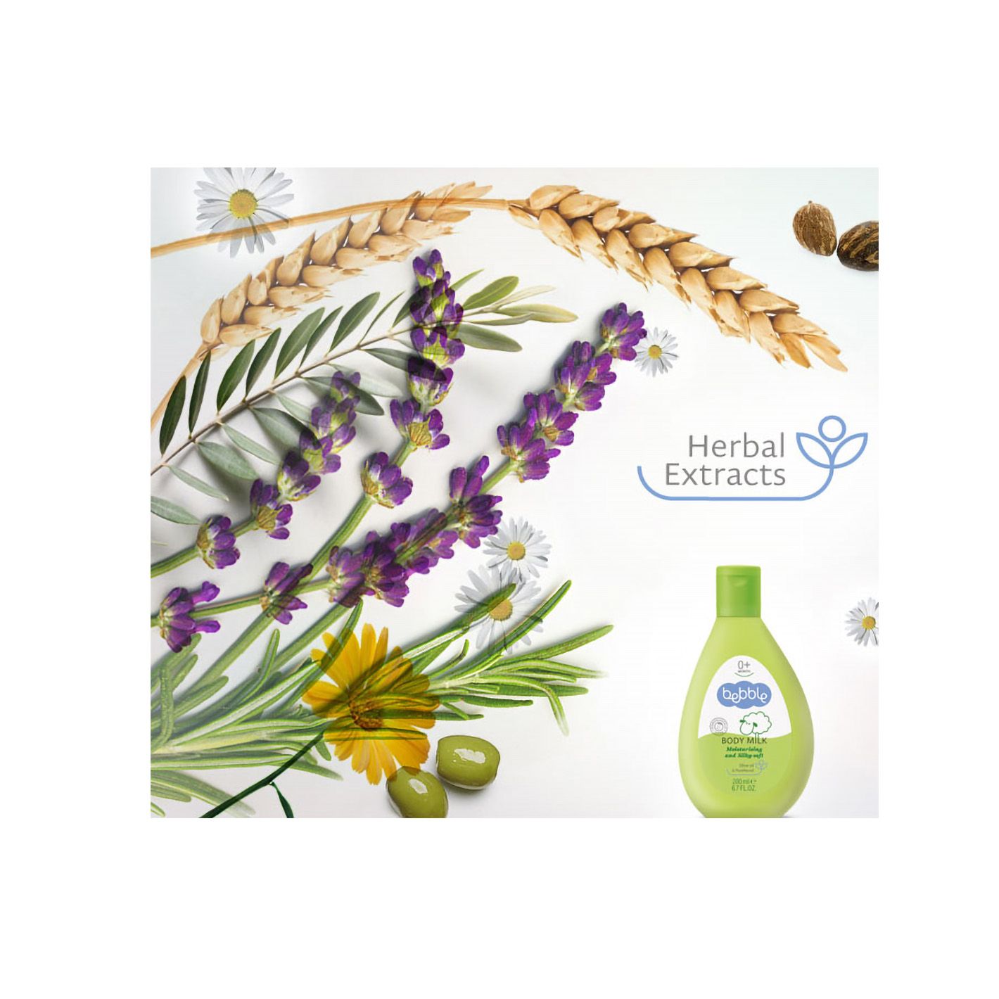 - Sữa dưỡng ẩm toàn thân Bebble Body Milk 200ml với sự góp mặt của dầu ô liu, vốn được biết đến với đặc tính giàu chất béo không bão hòa và chất chống oxi hóa, vì thế khi được hấp thụ vào da bé, dầu ô liu sẽ cung cấp những dưỡng chất là mềm, làm ẩm, khiến da bé mềm mịn và căng tràn dưỡng chất.