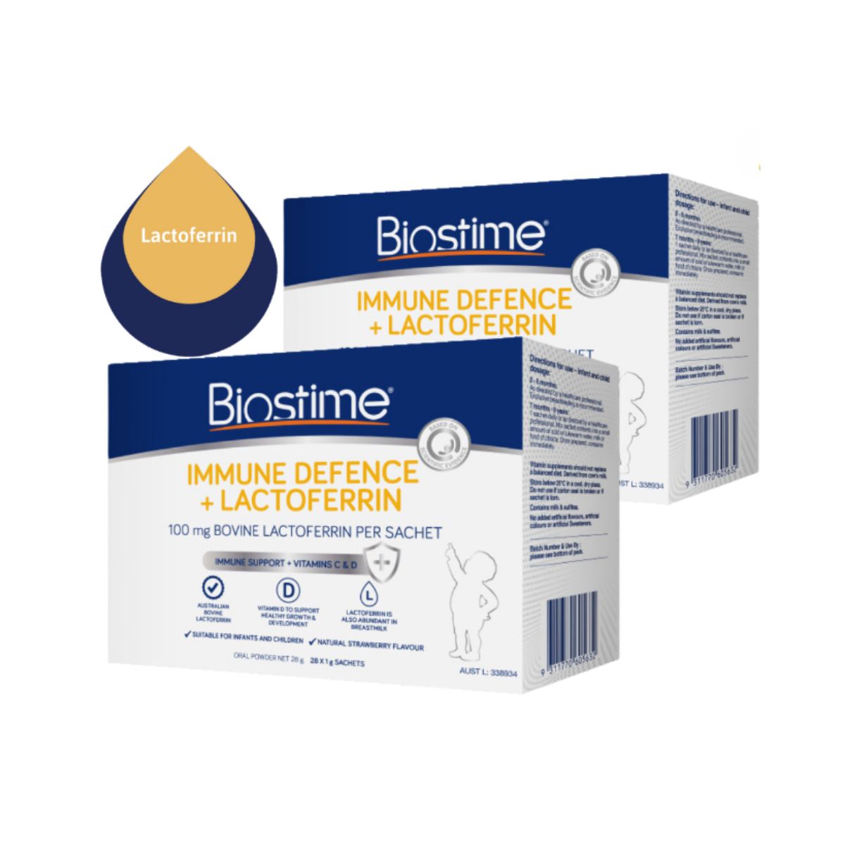 Biostime Immune Defence + Lactoferrin được sản xuất với Lactoferrin từ bò Úc và chứa Vitamin C & D để hỗ trợ hệ thống miễn dịch khỏe mạnh, tăng trưởng và phát triển khỏe mạnh. Lactoferrin là một loại protein có nhiều trong sữa mẹ, đặc biệt là sữa non. Nó có thể ức chế sự phát triển của vi khuẩn có hại trong ruột bằng cách tự gắn vào chất sắt dư thừa trong cơ thể mà vi khuẩn xấu ăn vào.